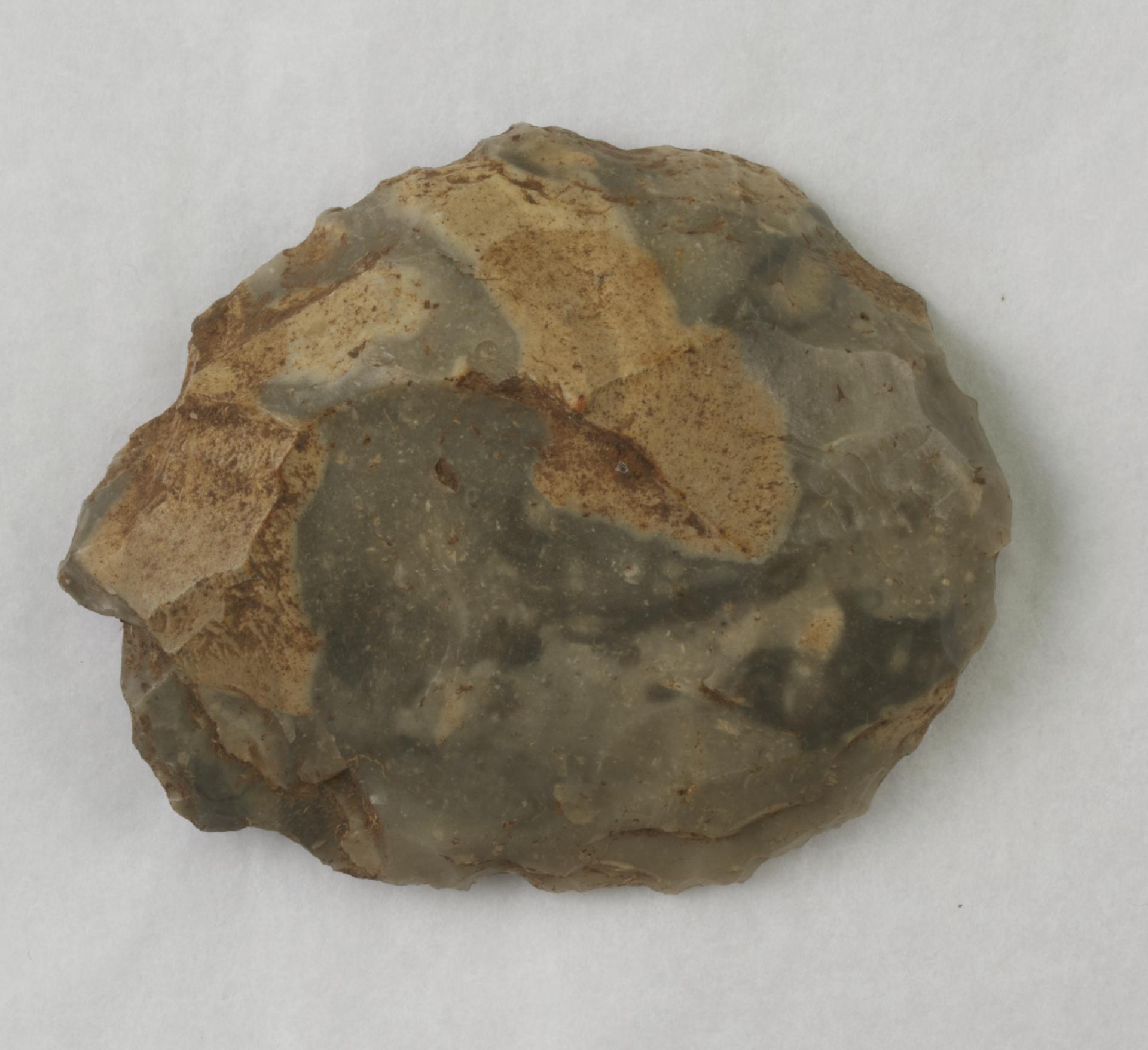 Flint scraper. Possibly a disc scraper. Circular in shape. Nearly whole edge is retouched.