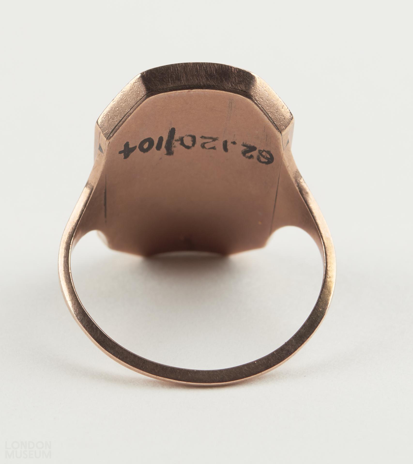 ring with silhouette portrait of schoolboy in flat peaked cap; c.1810