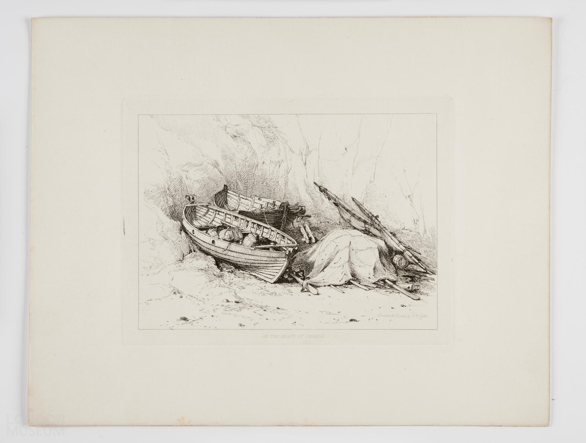 'On the beach at Cromer'. From 'Sixty Five Plates of Shipping and Craft', drawn and etched by E.W. Cooke, published in London, 1829.