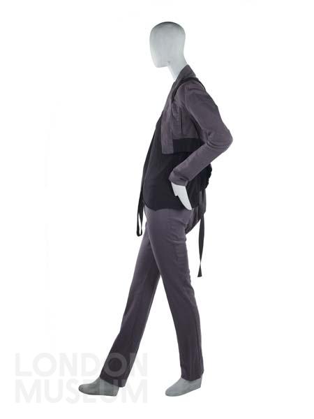 Jacket, t-shirt and trousers designed by Preen. Concrete is owned by the Public Relations company Concrete, which positions itself at the cutting edge of fashion. This outfit was purchased from Concrete but Preen have their own boutique in Portobello Road. The label, which is owned by the designers Justin Thornton and Thea Bragazzi, is known for its urban styling and experimental approach