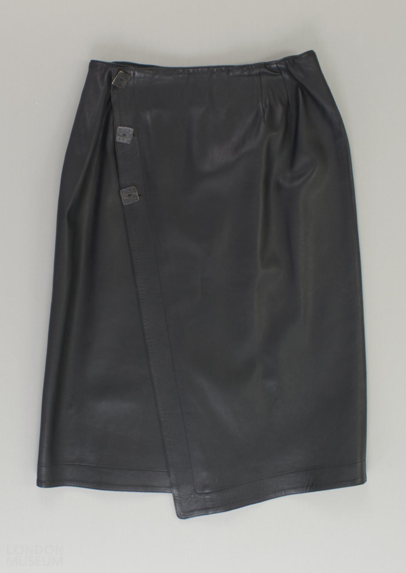 Skirt from a nappa leather suit, autumn/winter 1984. Designed by Jean Muir.