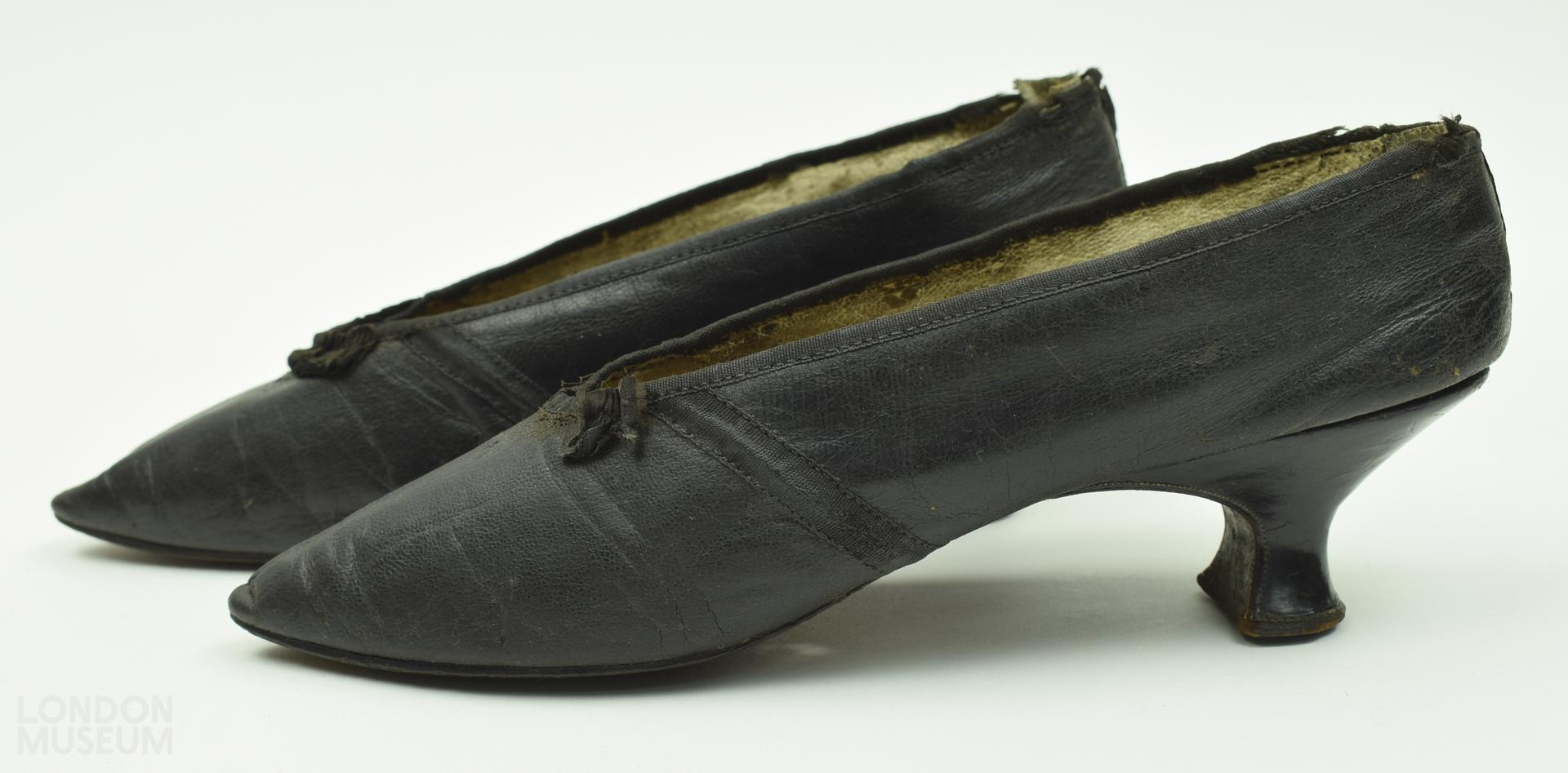 Sophie von la Roche, 1786, '... nearly all the women wear black shoes with very low heels when walking'.