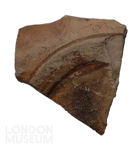 Incomplete ceramic closed lamp, body fragment. Only a very small part of the body survives. Part of a flat circular base with two concentric grooves. ?Central Gaulish colour-coated ware (white fabric) (CGWH).