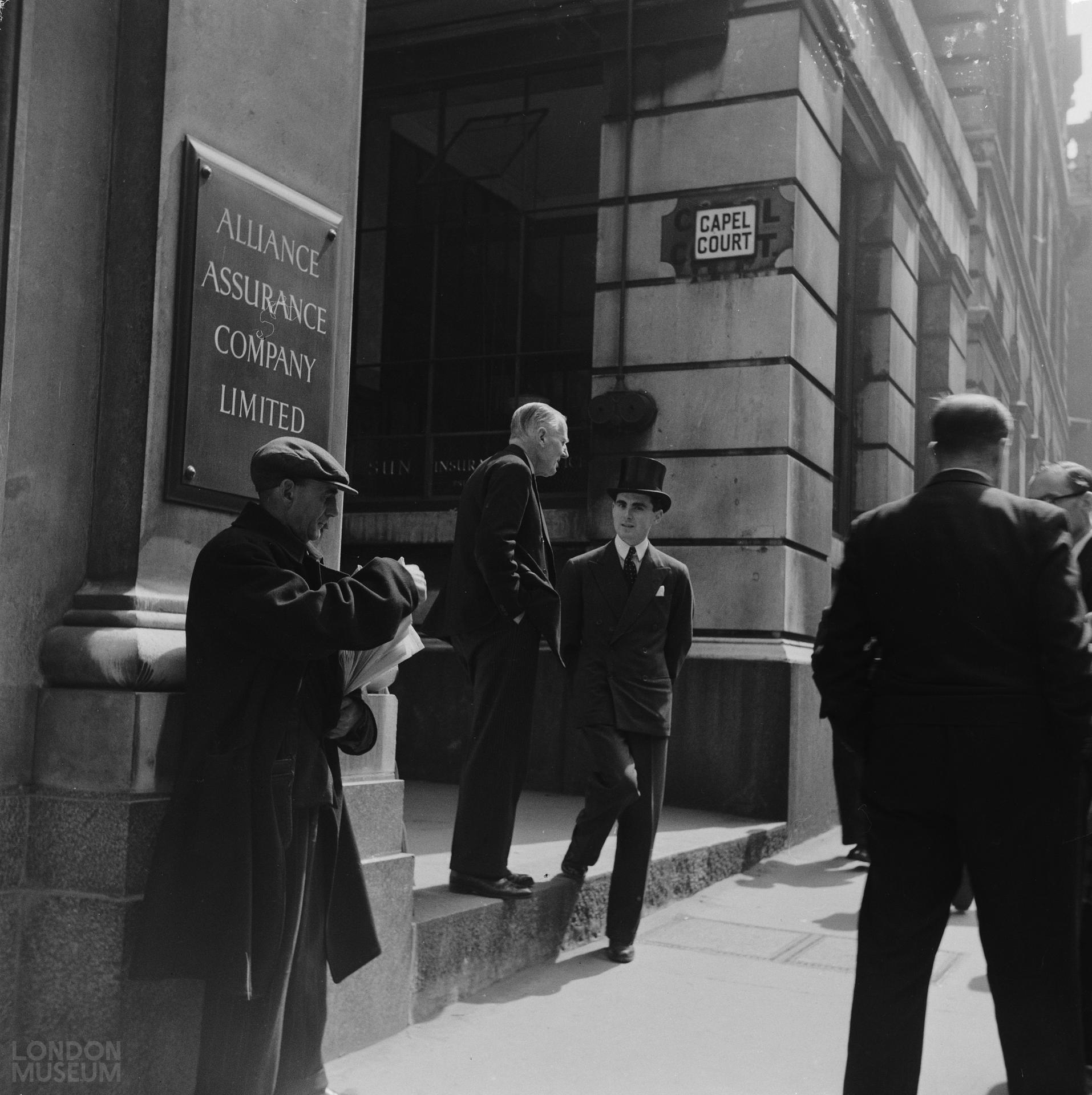 The Alliance Assurance Company was an insurance company founded in 1824 by Nathan Mayer Rothschild and Moses Montefiore as the Alliance Marine Assurance Company. In 1959 the company merged with another insurance firm The Sun to become Sun Assurance and then in 1996 Sun Assurance merged with Royal Insurance to become Royal and Sun Insurance. Capel Court where the insurance company was based was also home to the London Stock Exchange and was near to the Bank of England.