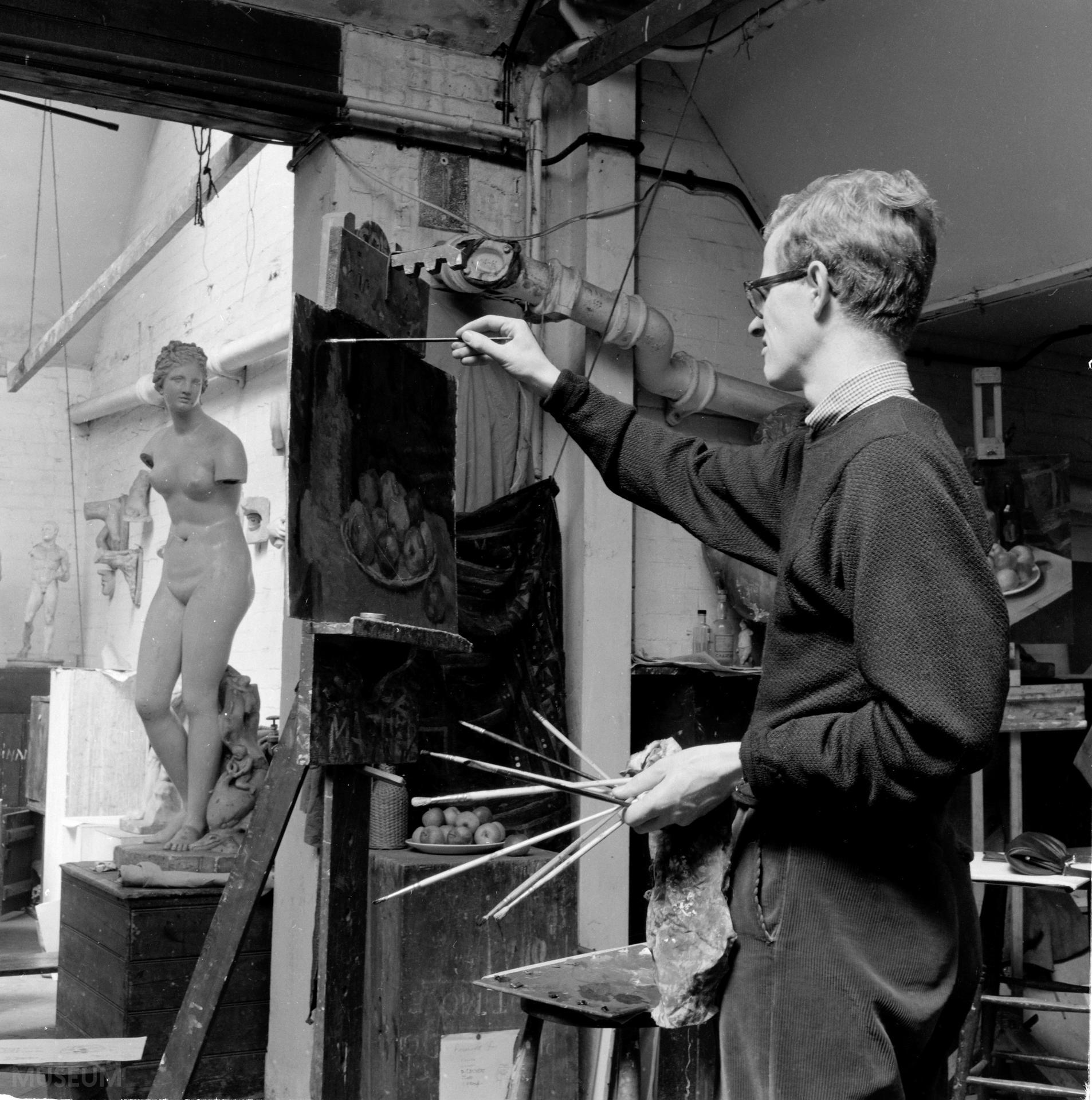 Student working on a still life at the Byam School of Art.The Byam School was founded in 1910 by artists John Byam Shaw and Rex Vicat Cole. It was located in Kensington and focused in fine art. It became part of Central Saint Martins in 2003.