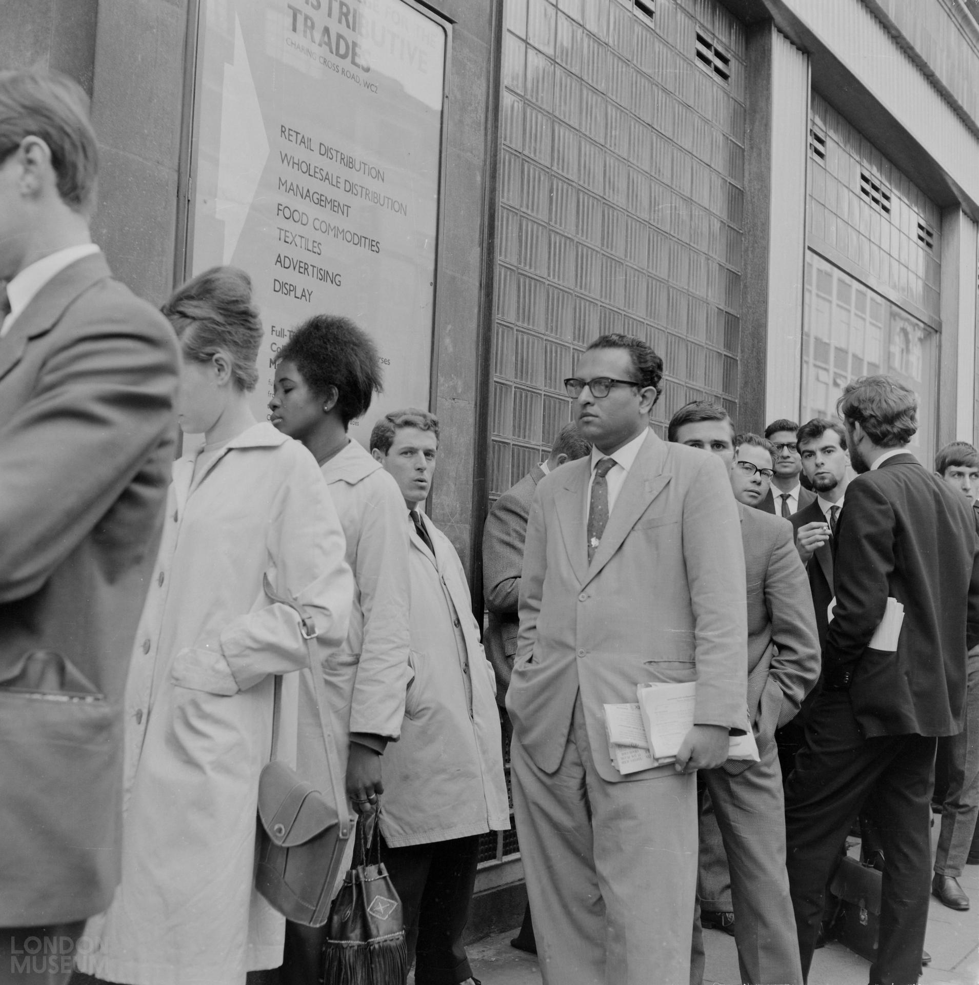 Prospective students enrolling for evening classes in Advertising at the College for the Distributive Trades in Charring Cross Road. In 1990 the College was merged with the London College of Printing and in 2004 it became the London College of Communication.
