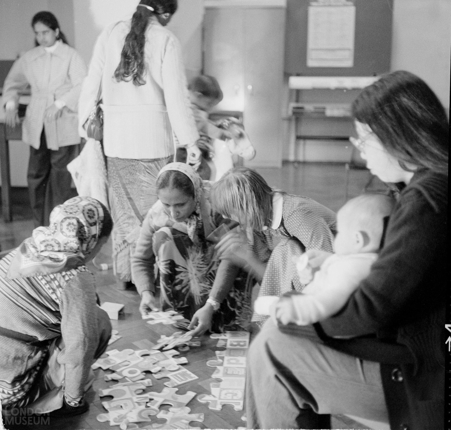 Students completing an alphabet jigsaw at the Garth Community Centre in Cricklewood. These women were on an 'English as a Second Language' course.
