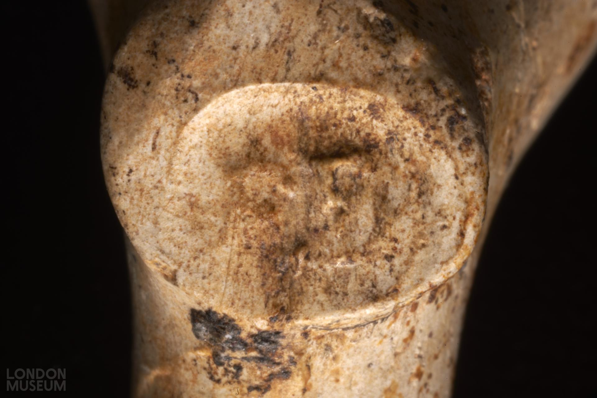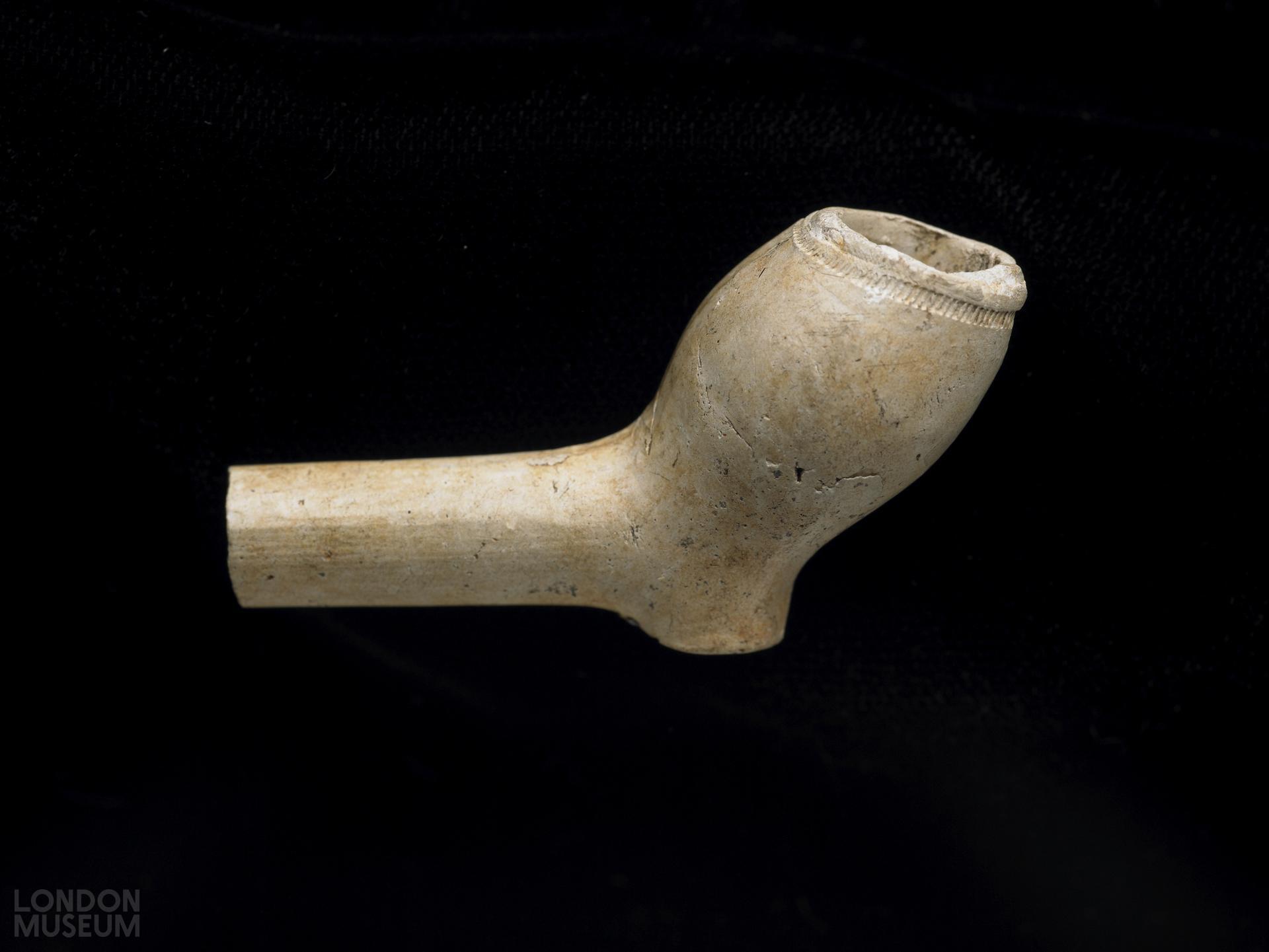 Complete bowl. Fully milled around bowl-rim. Stamped mark, in relief, on base of heel: EB. Atkinson and Oswald (1969) type 5