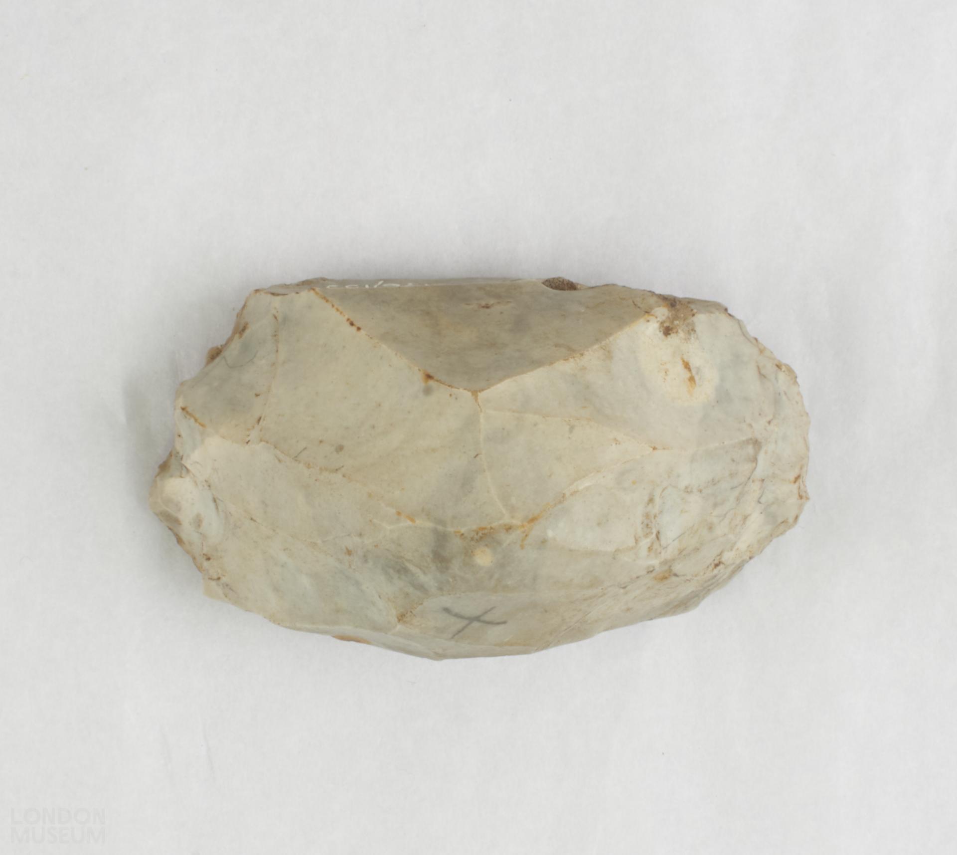 Grey flint core that 'may be the head of a composite tool and meant to be inserted into a bone holder or sleeve' (Lacaille 1966).