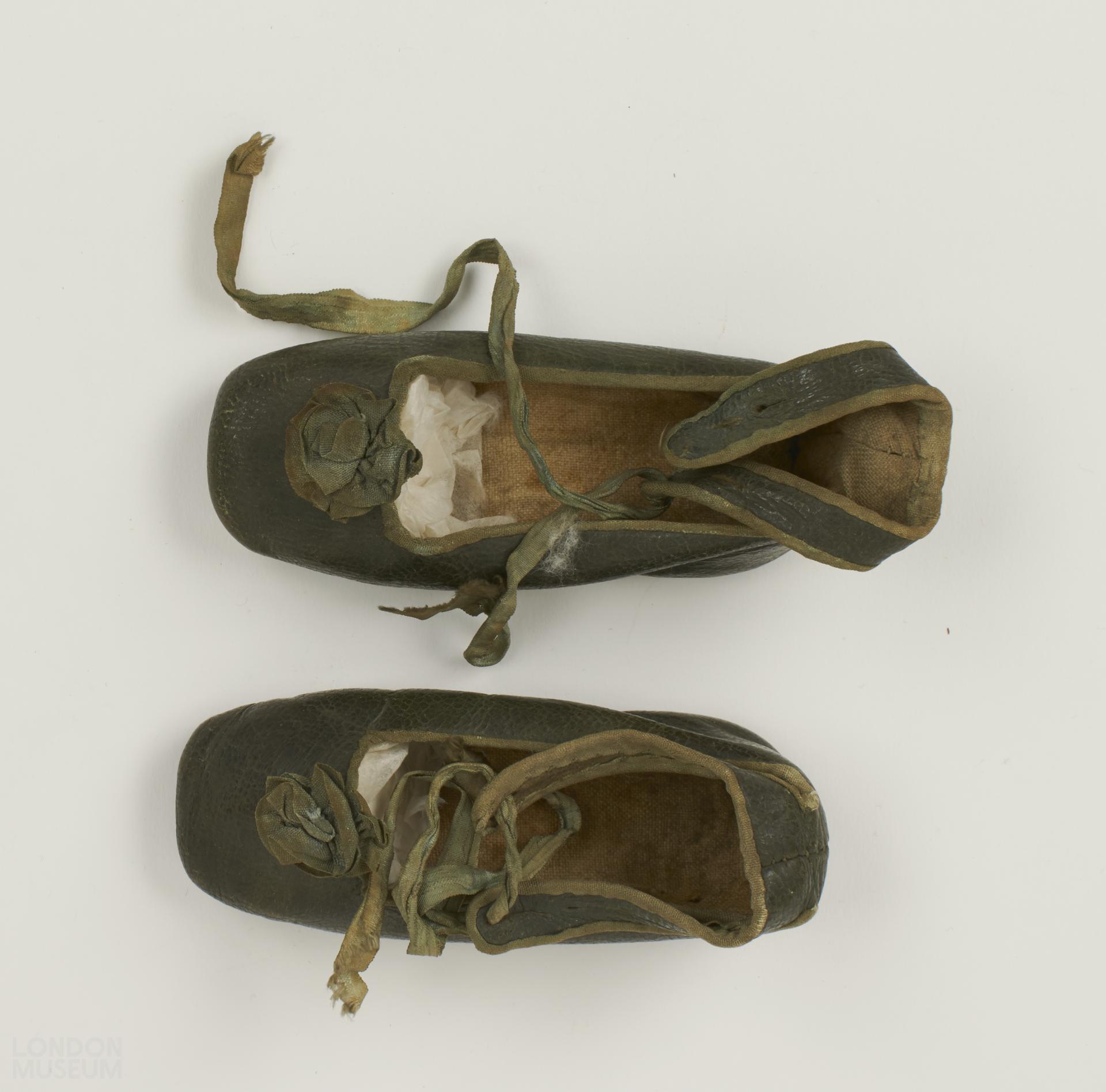Shoes worn by Elizabeth Annie Pownall, married Redford in 1867 - see file for more information.