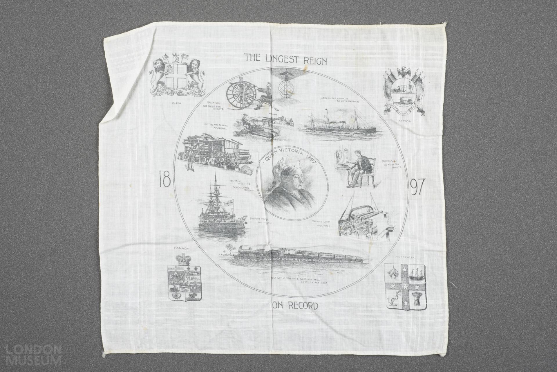 Printed handkerchief, titled 'The Longest Reign on Record'.