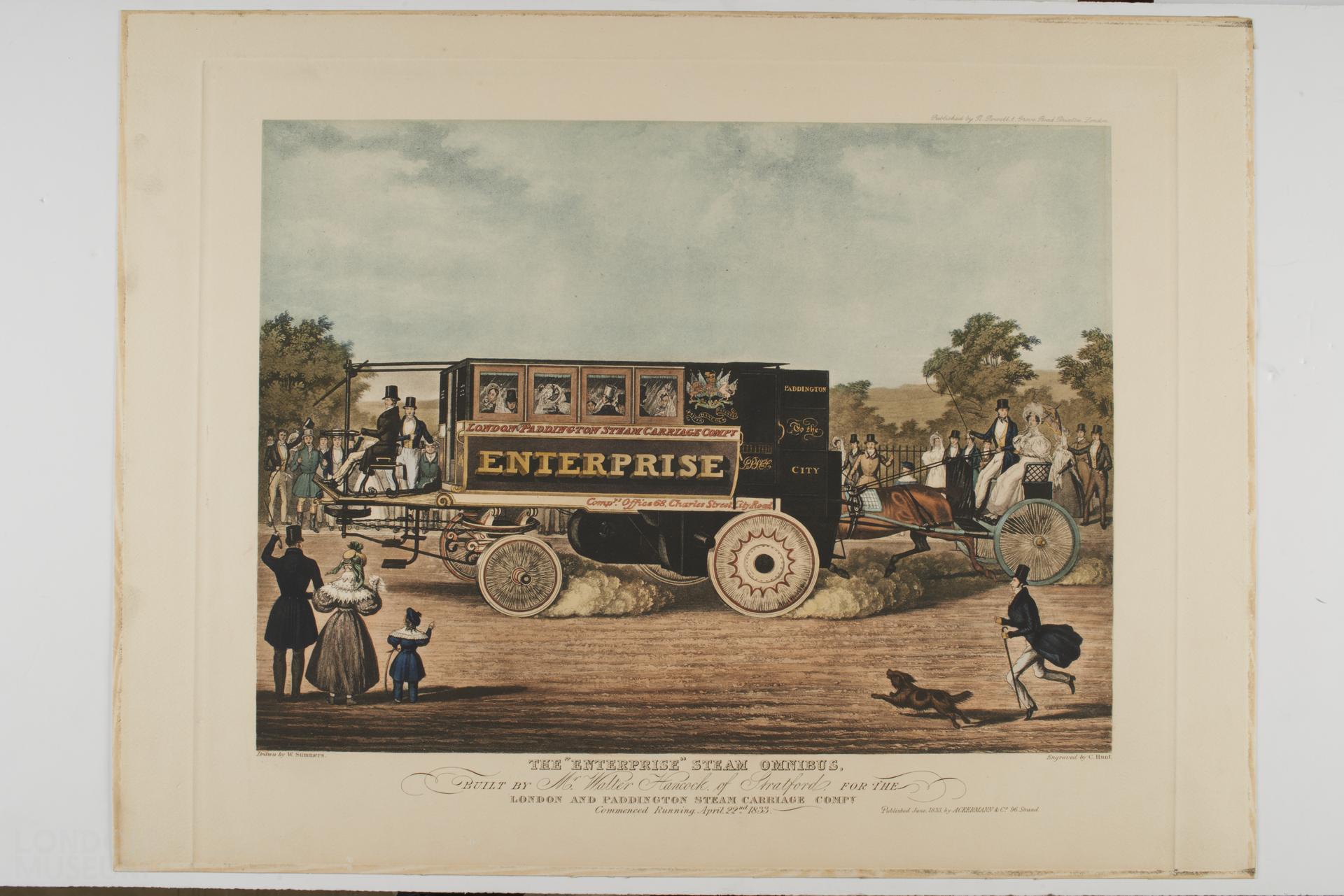 - The "Enterprise" steam omnibus, built by Mr Walter Hancock of Stratford, for the London and Paddington steam carriage company. Commenced running April 22nd 1833