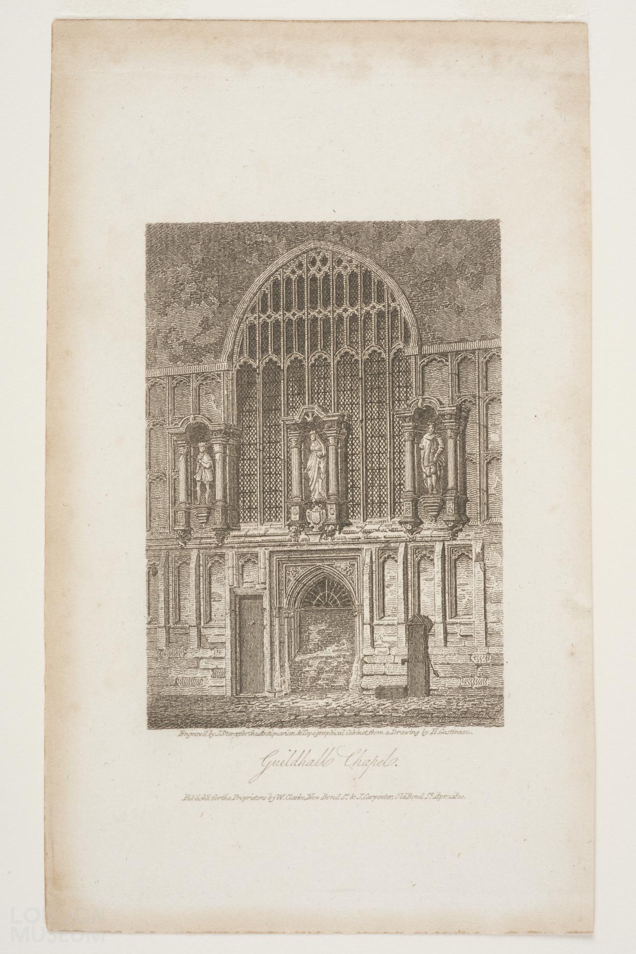 Exterior view of the Guildhall Chapel. Engraved by J Storer, for the Antiquarian & Topographical Cabinet from a drawing by H Gastineau. Published for the Proprietors by W Clarke, New Bond Street & J. Carpenter, Old Bond Street, April.1.1810.