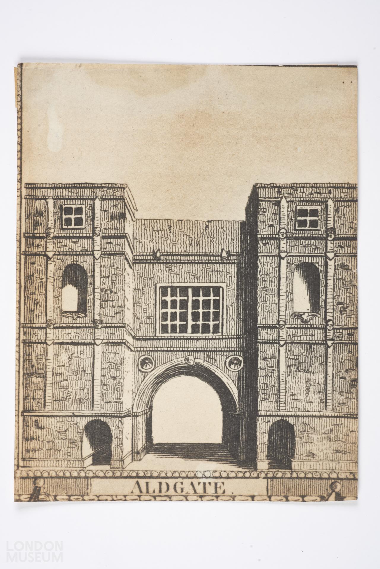 Photolithograph of engraving of the Aldgate, demolished 1761.