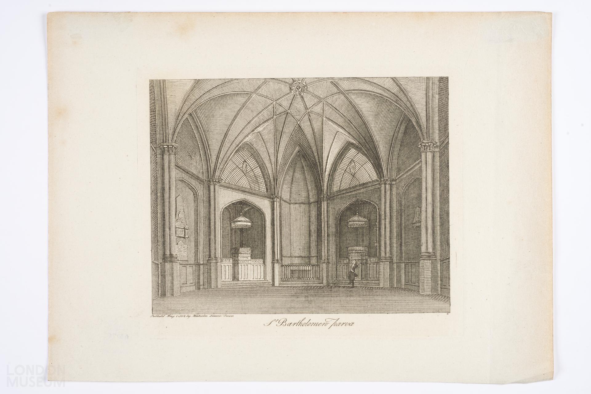 St. Bartholomew Parva (the Less) interior. Published May 1.1802 by Malcolm Somer Town.