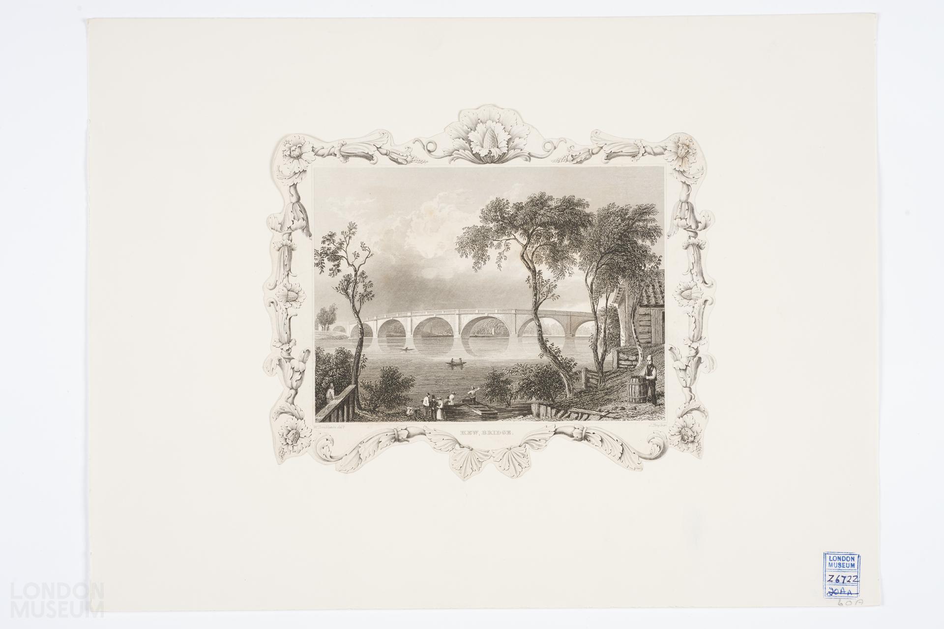 View of Kew Bridge, with decorative border. From an original design by William Tombleson (fl.1824-1846) and originally published with the part-work series "Tombleson's Views of the Thames and Medway" (London 1833-1834).
