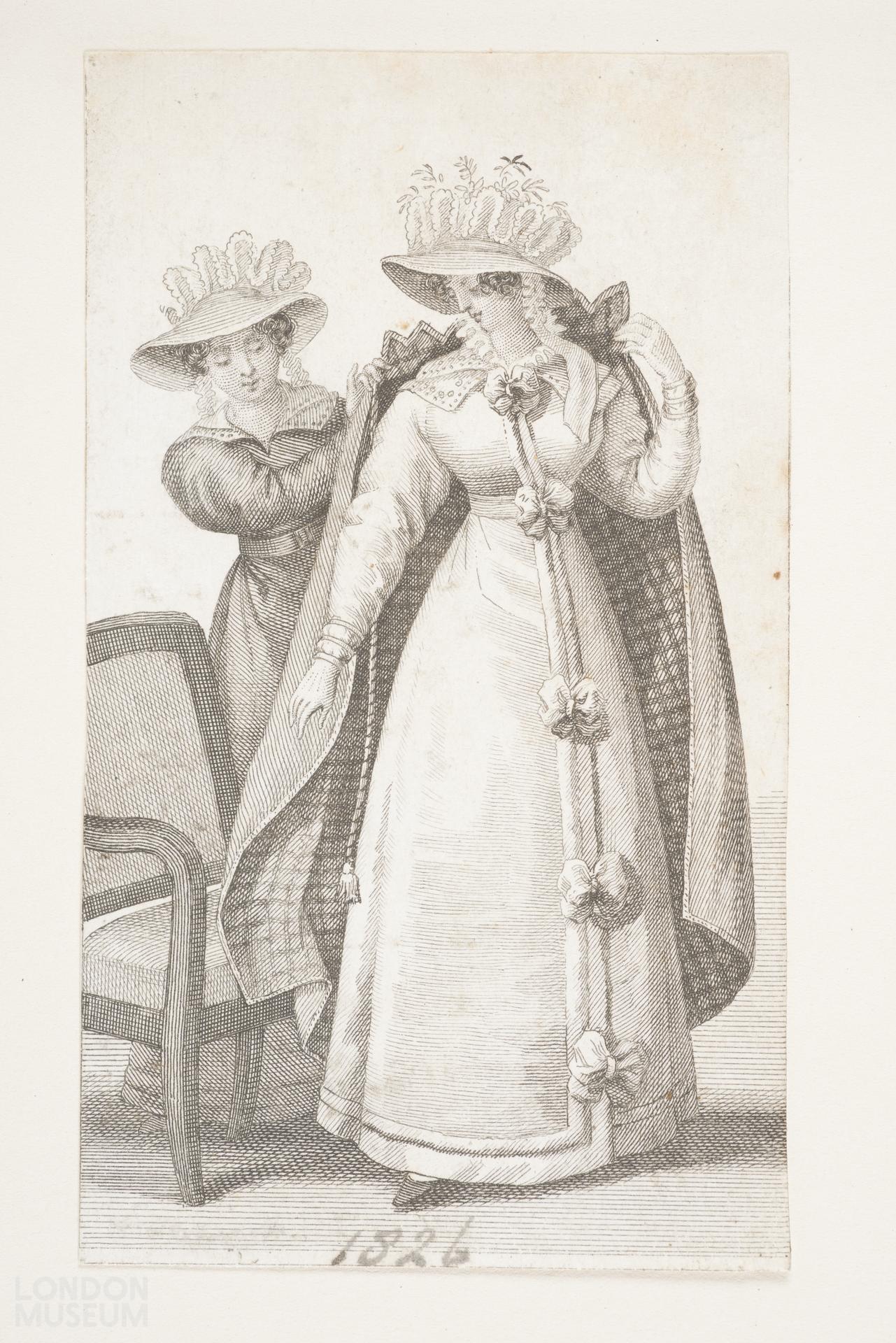 A print of two women front views, with no inscription, 1826.