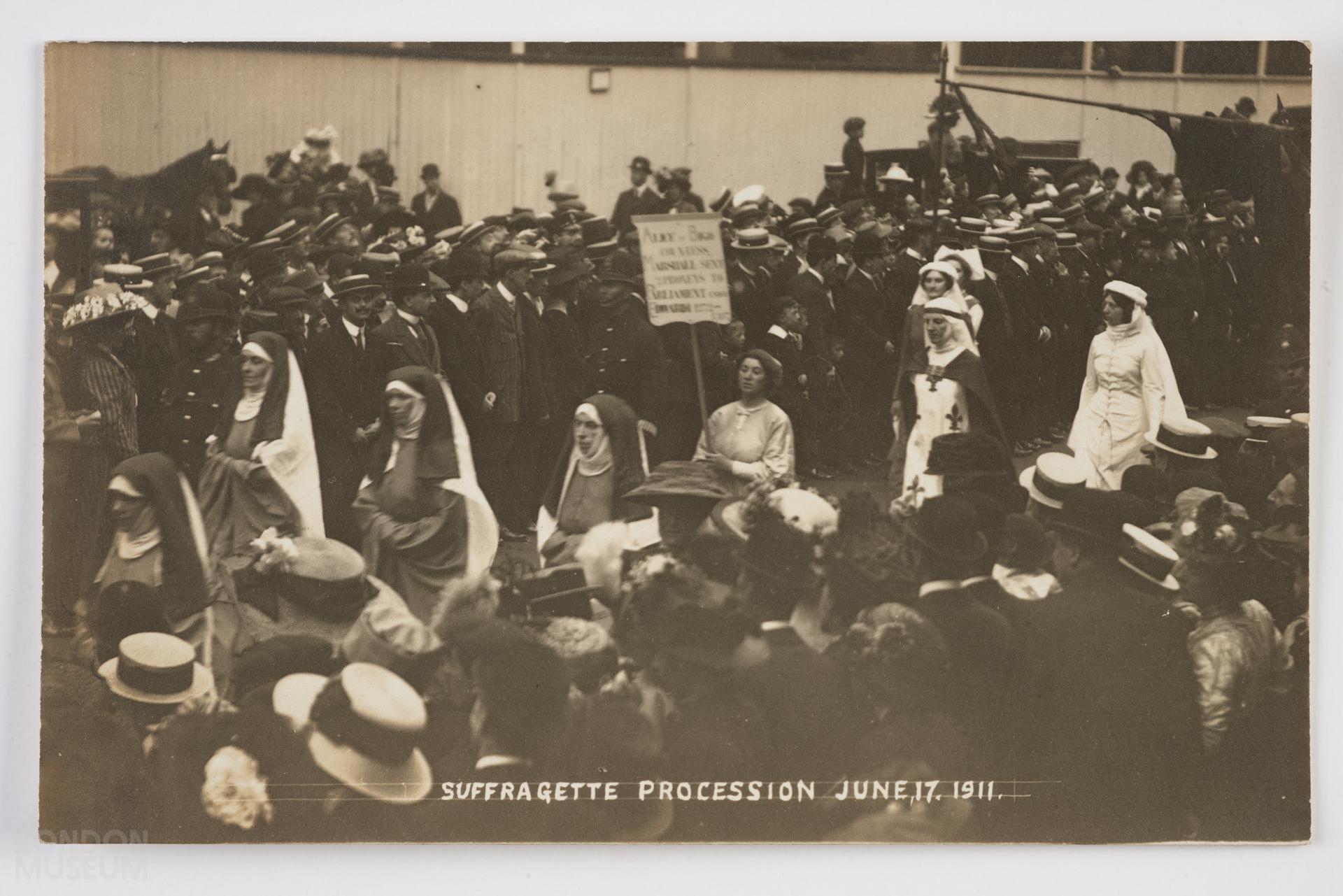 Suffragette procession in the streets, dated June 17 1911.