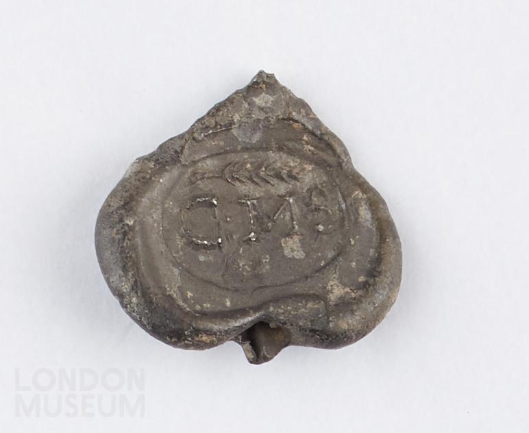 Seal heart-shaped; design reads GMS with chevron/arrow above, probably symbolising a sprig of wheat. Complete.