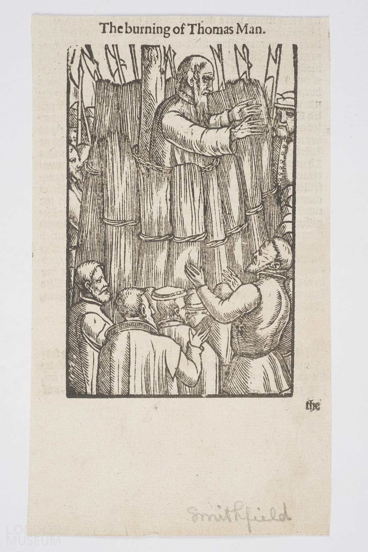 Martyrdom of Thomas Man in Smithfield. Text on reverse.