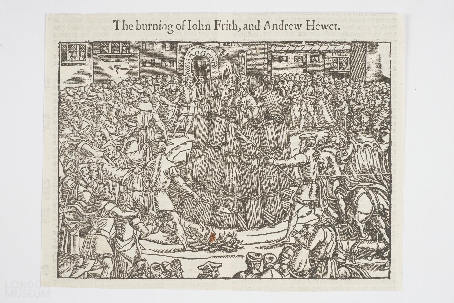 Martyrdom of Frith and Hewet, 1533. Print on reverse.