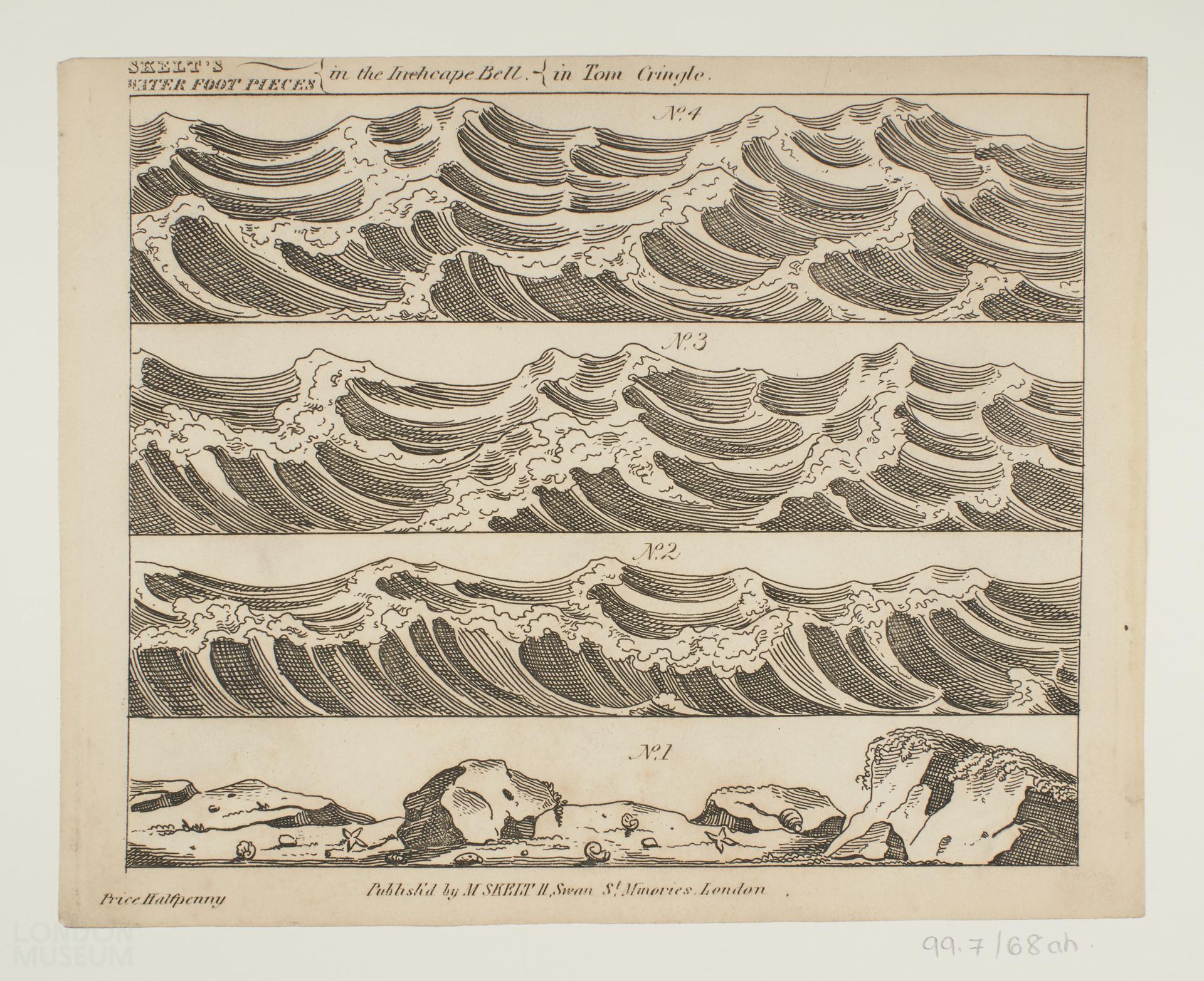 Toy theatre scenery sheet, one of thirty-four sheets, relating to the play 'Inchcape Bell', as well as one other named play. Published by Martin Skelt, 11 Swan Street, Minories, London.