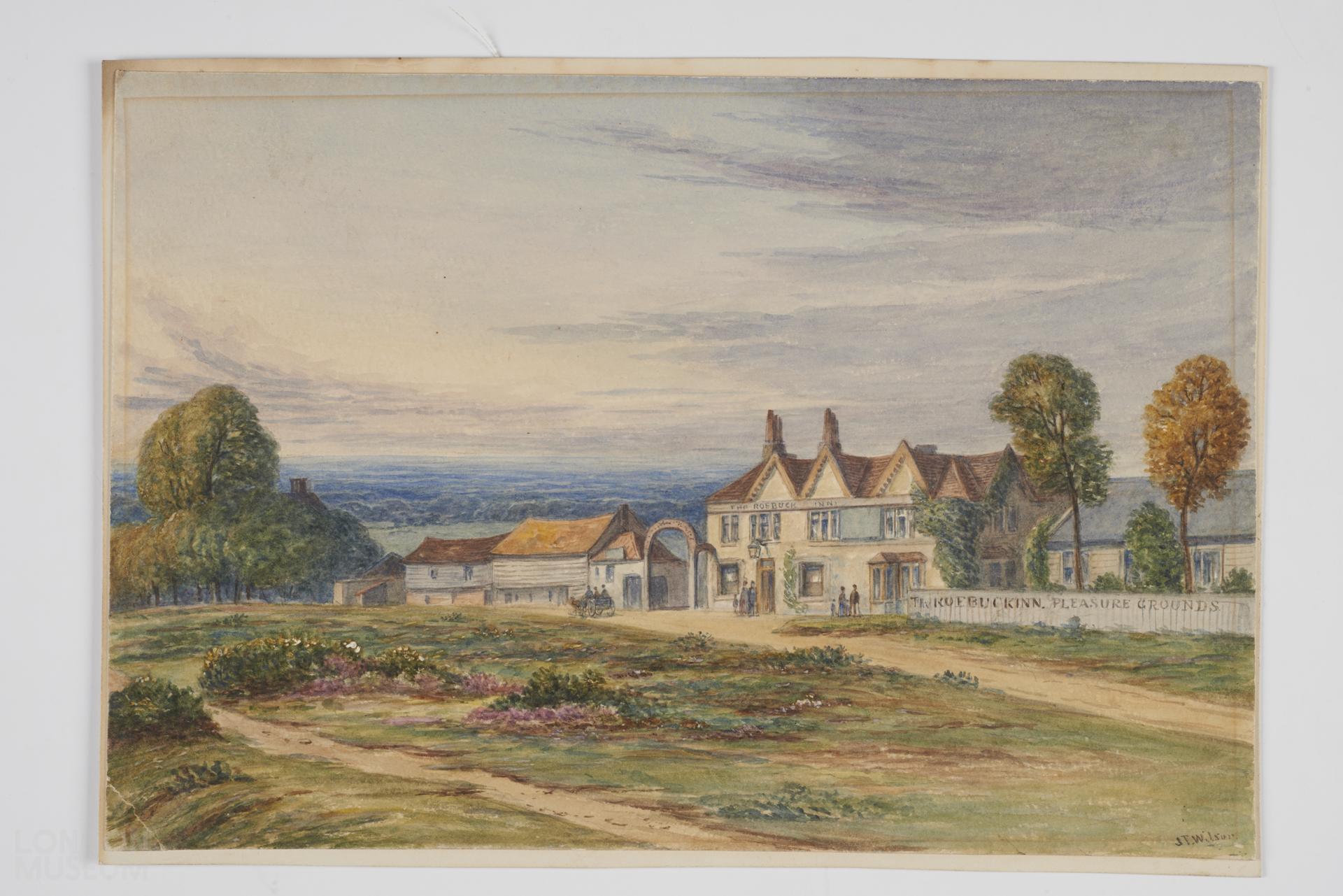 Exterior of The Roebuck Inn, public house, Buckhurst Hill, Chigwell. Signed.
