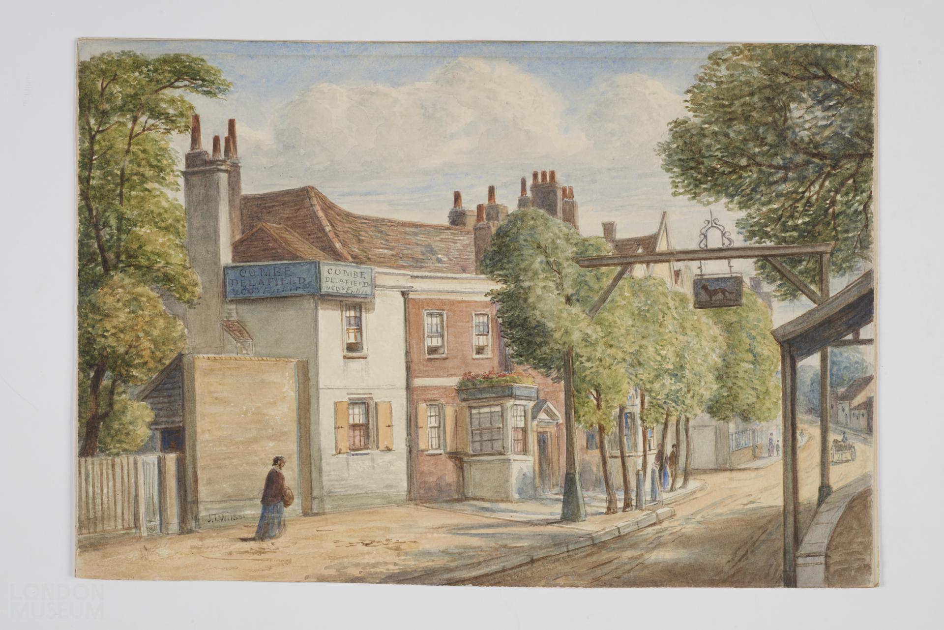 Exterior of the Greyhound, public house, Dulwich. Signed.