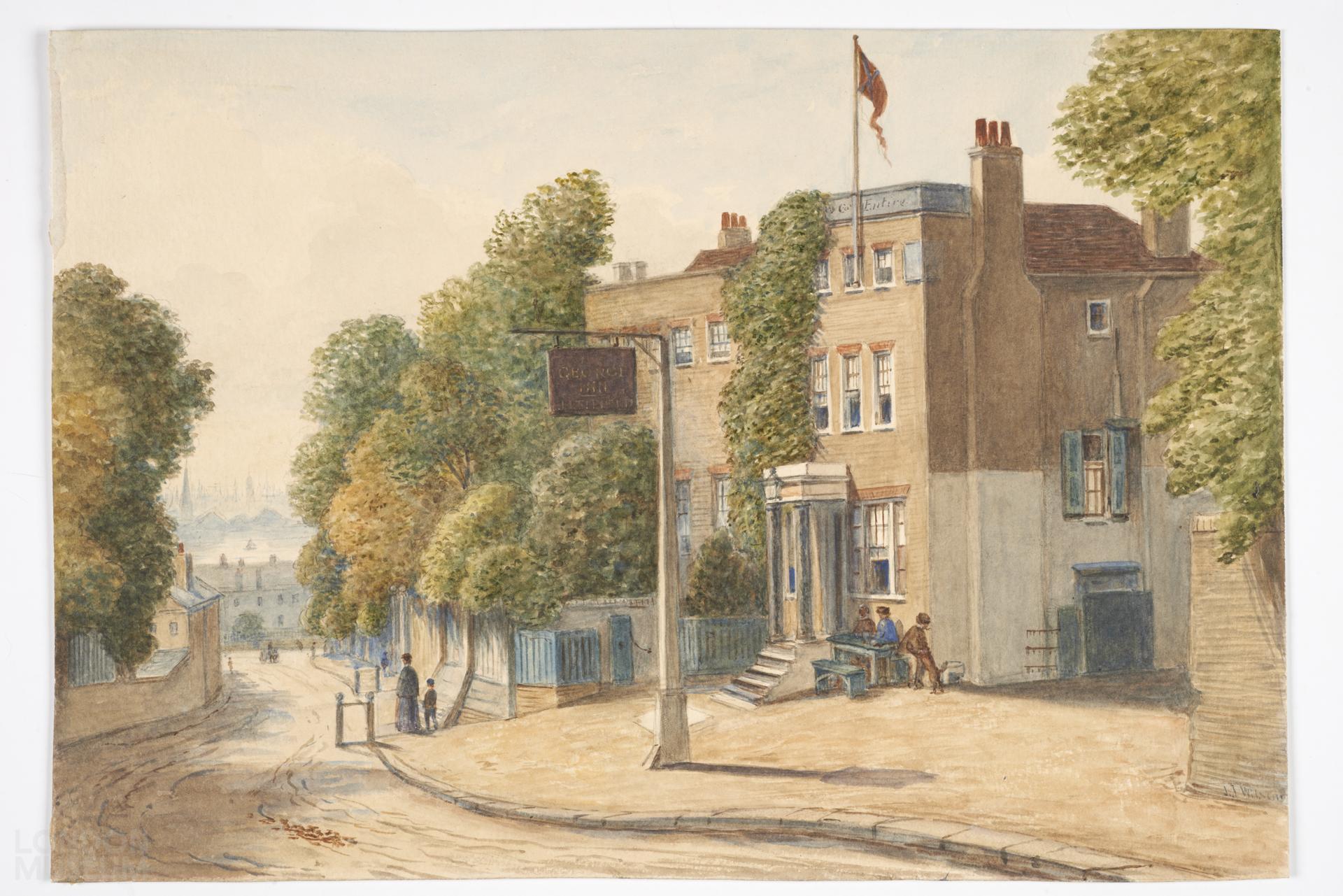 Exterior of the George Inn, Maze/Maize Hill, Greenwich. Signed.