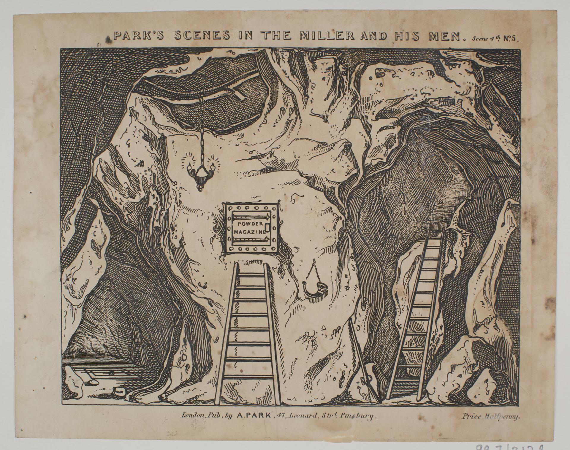 Printed black and white scenery sheet titled 'Park's Scenes in The Miller and his Men'. Scene 4th, No 5.