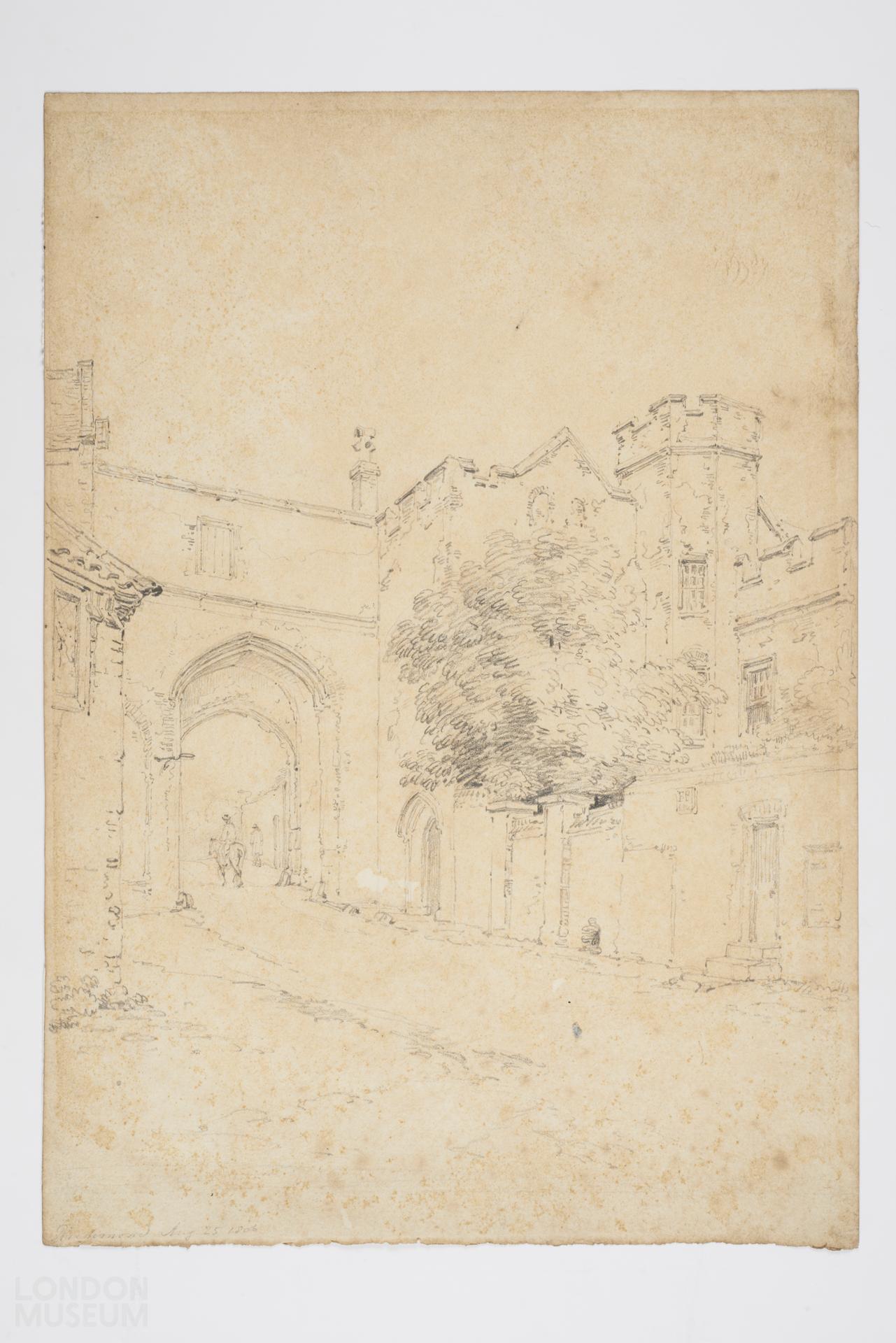 Sketched view of the gateway, Richmond Palace, Surrey. Inscribed 'Richmond Aug 25 1806'.