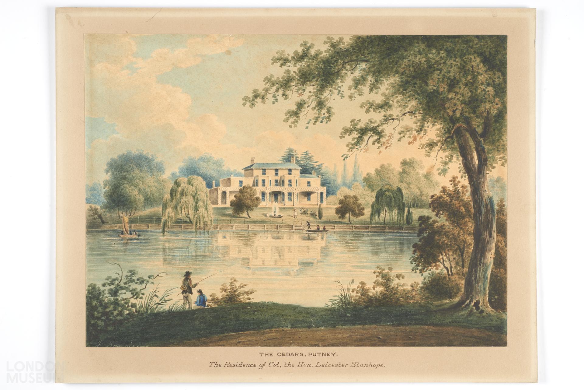 Exterior of 'The Cedars', Putney, home of Col. the Hon Leicester Stanhope, later 5th Earl of Harrington. Signed.