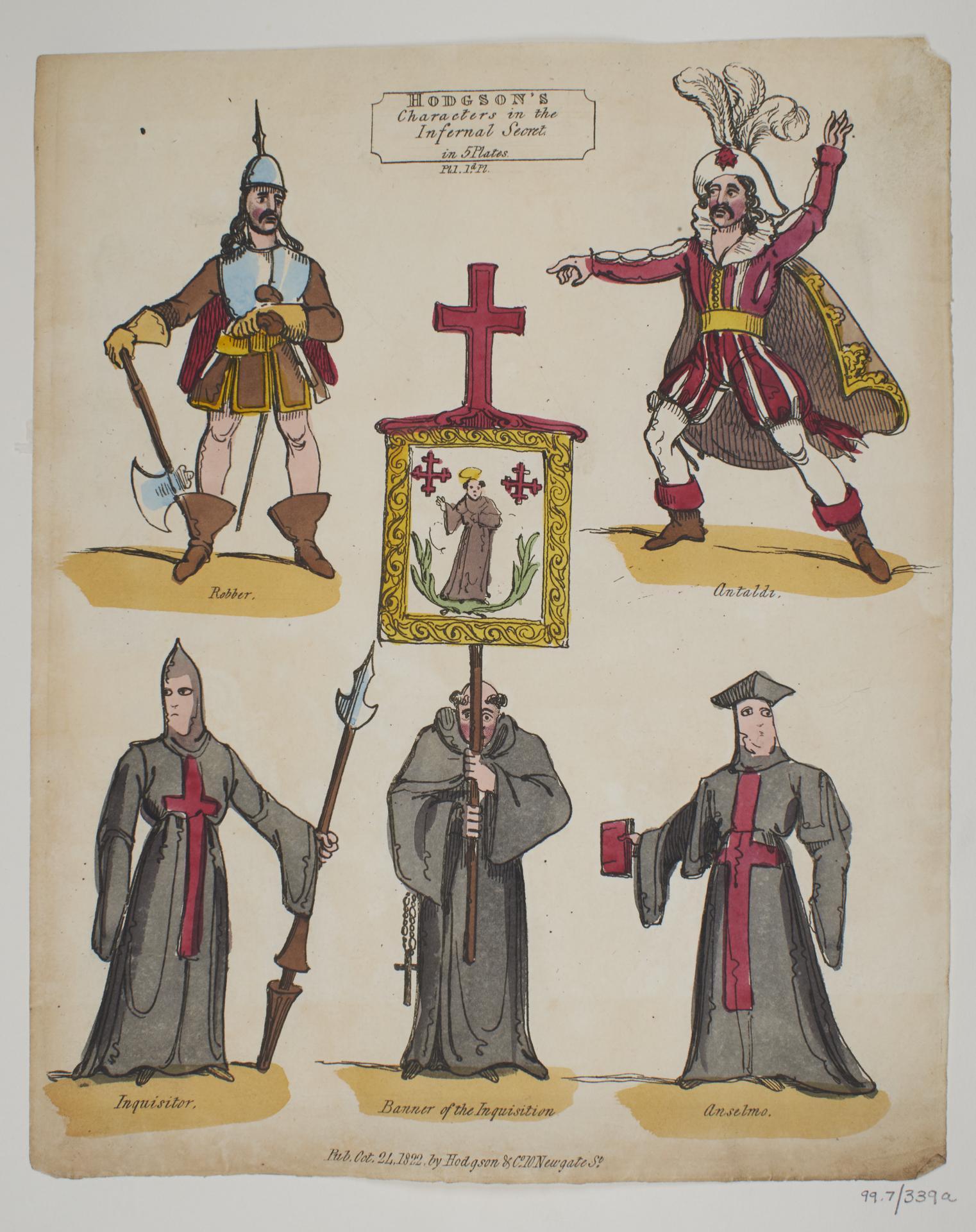Toy theatre character sheet for the play 'The Infernal Secret', in 5 Plates. Published by Hodgson and Company.