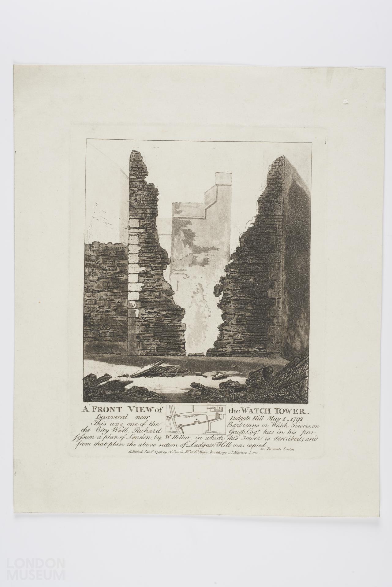 A front view of the Watch Tower, London Wall, discovered near Ludgate in 1792