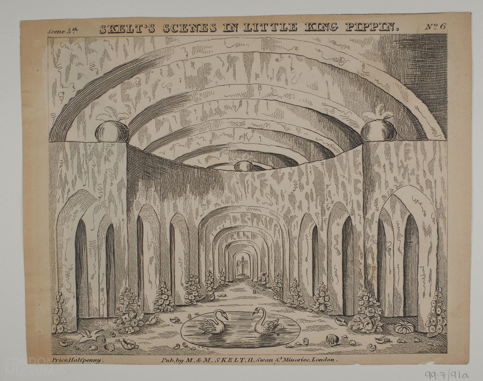 Toy theatre scenery sheet, 'Skelt's Scenes In Little King Pippin', Scene 5, No. 6. Published by M and M Skelt, 11 Swan Street Minories, London.