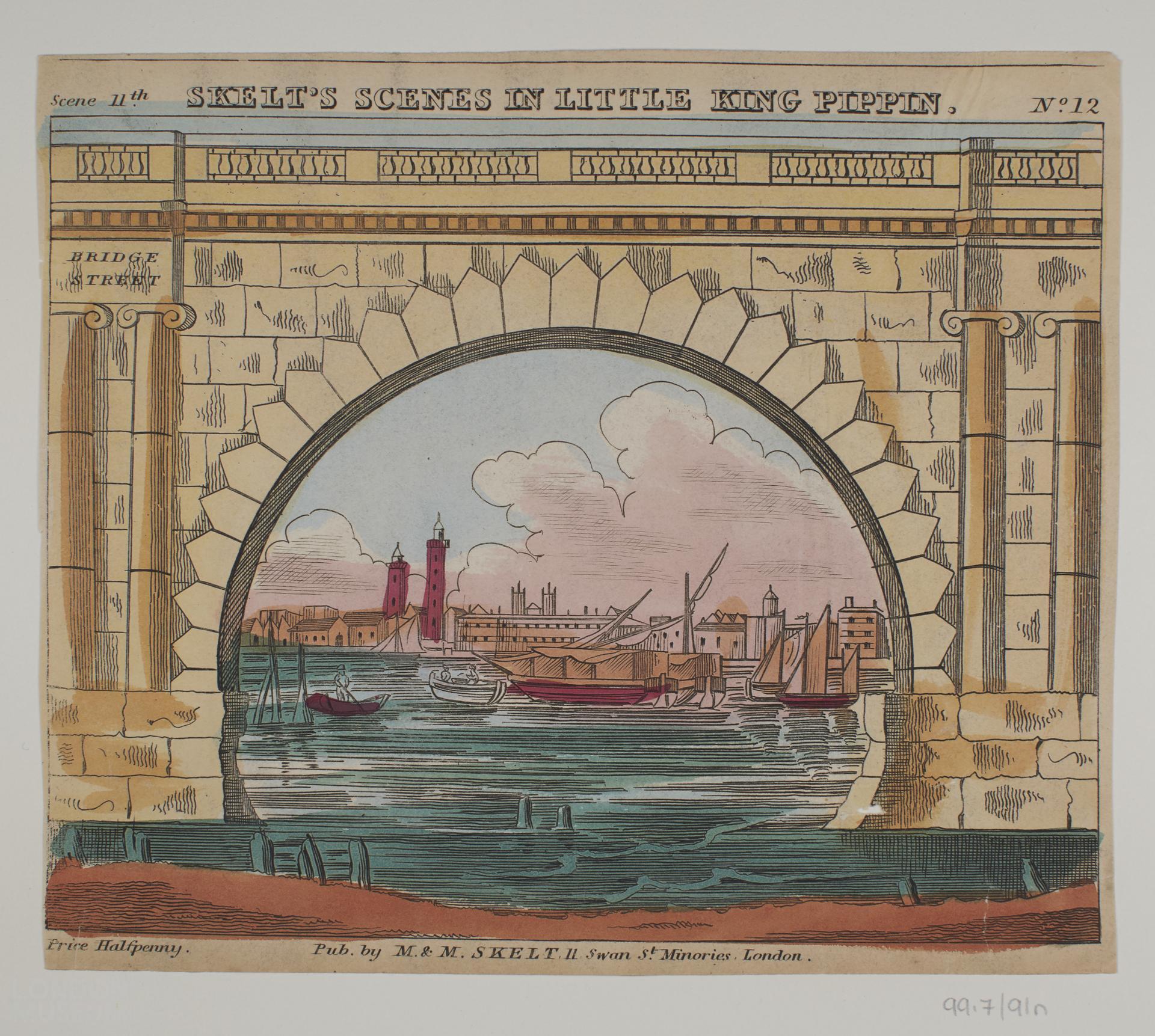 Toy theatre scenery sheet, 'Skelt's Scenes In Little King Pippin', Scene 11, No. 12. Published by M and M Skelt, 11 Swan Street Minories, London.