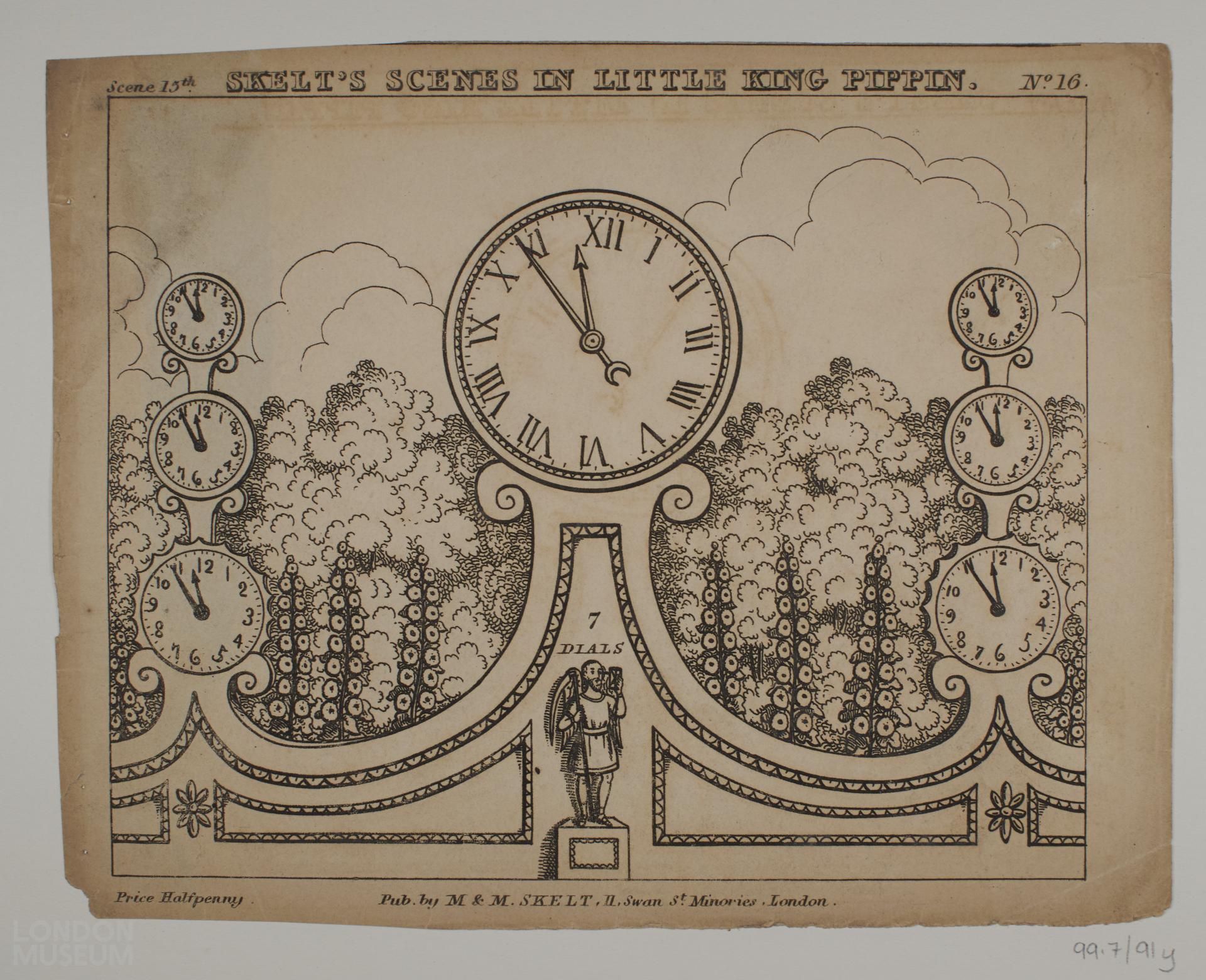 Toy theatre scenery sheet, 'Skelt's Scenes In Little King Pippin', Scene 15, No. 16. Published by M and M Skelt, 11 Swan Street Minories, London.