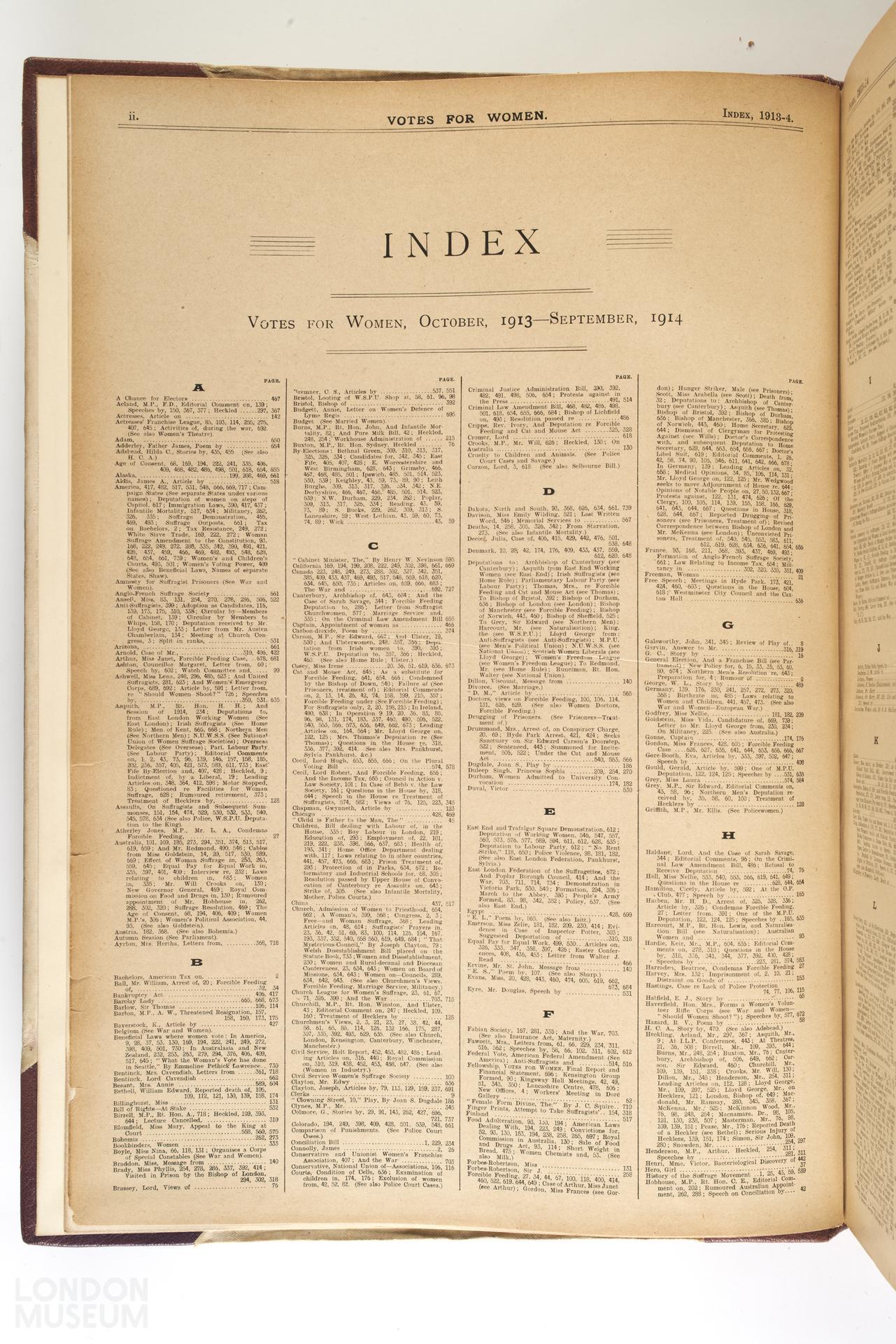 - Votes for Women, Vol. VII, October 1913 - September 1914