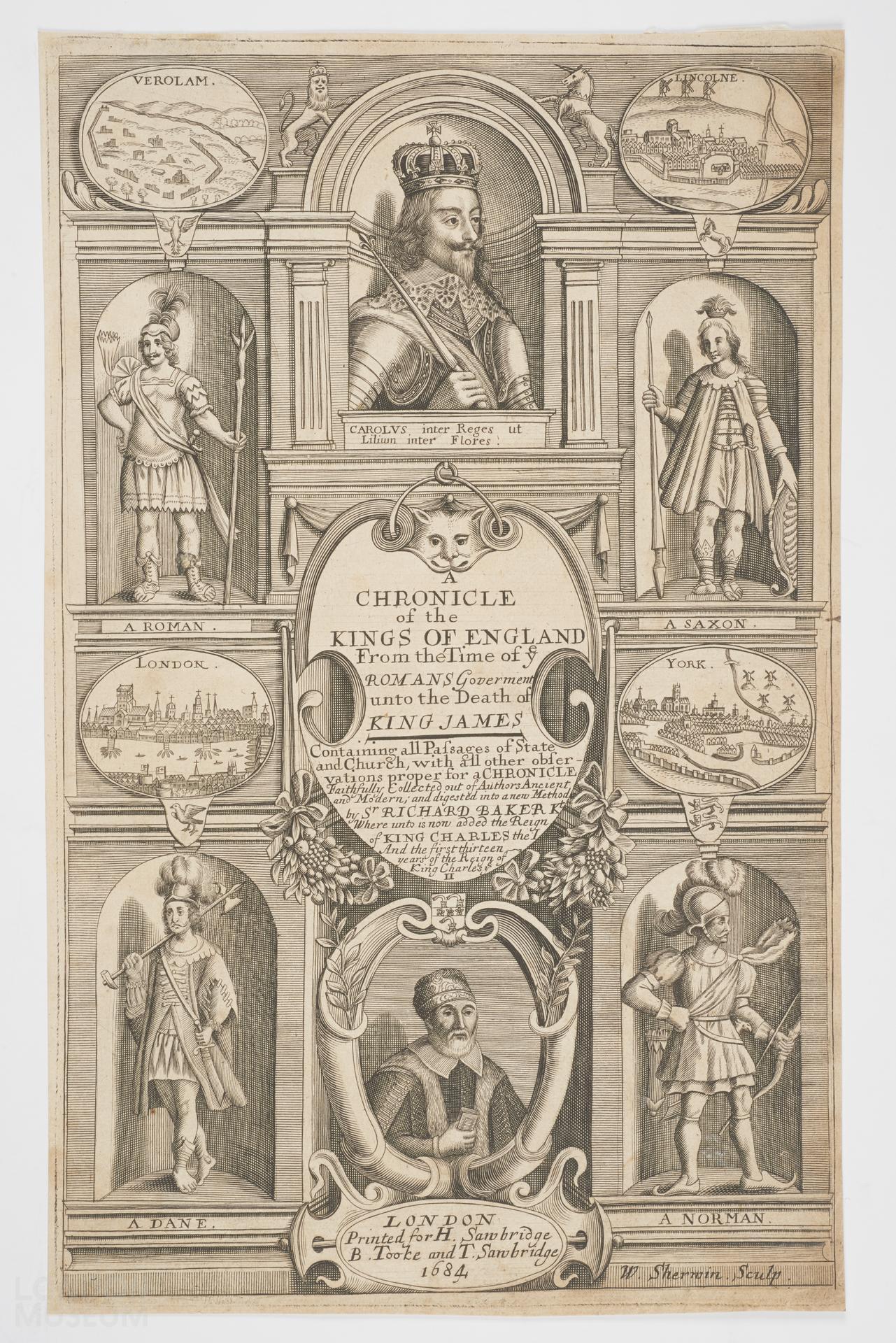 Frontispiece for 'A Chronicle of the Kings of England, from the time of the Roman's Government unto the death of King James' by Sir Richard Baker.