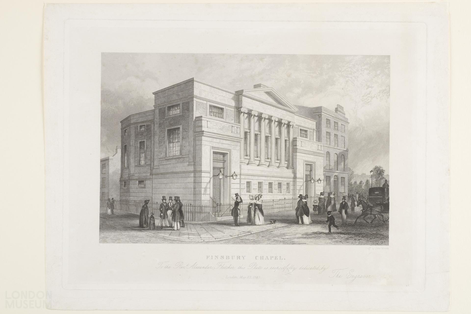 Inscribed: 'FINSBURY CHAPEL. / To The Rev.d Alexander Fletcher, this Plate is respectfully dedicated by The Engraver / London May 23, 1843'
