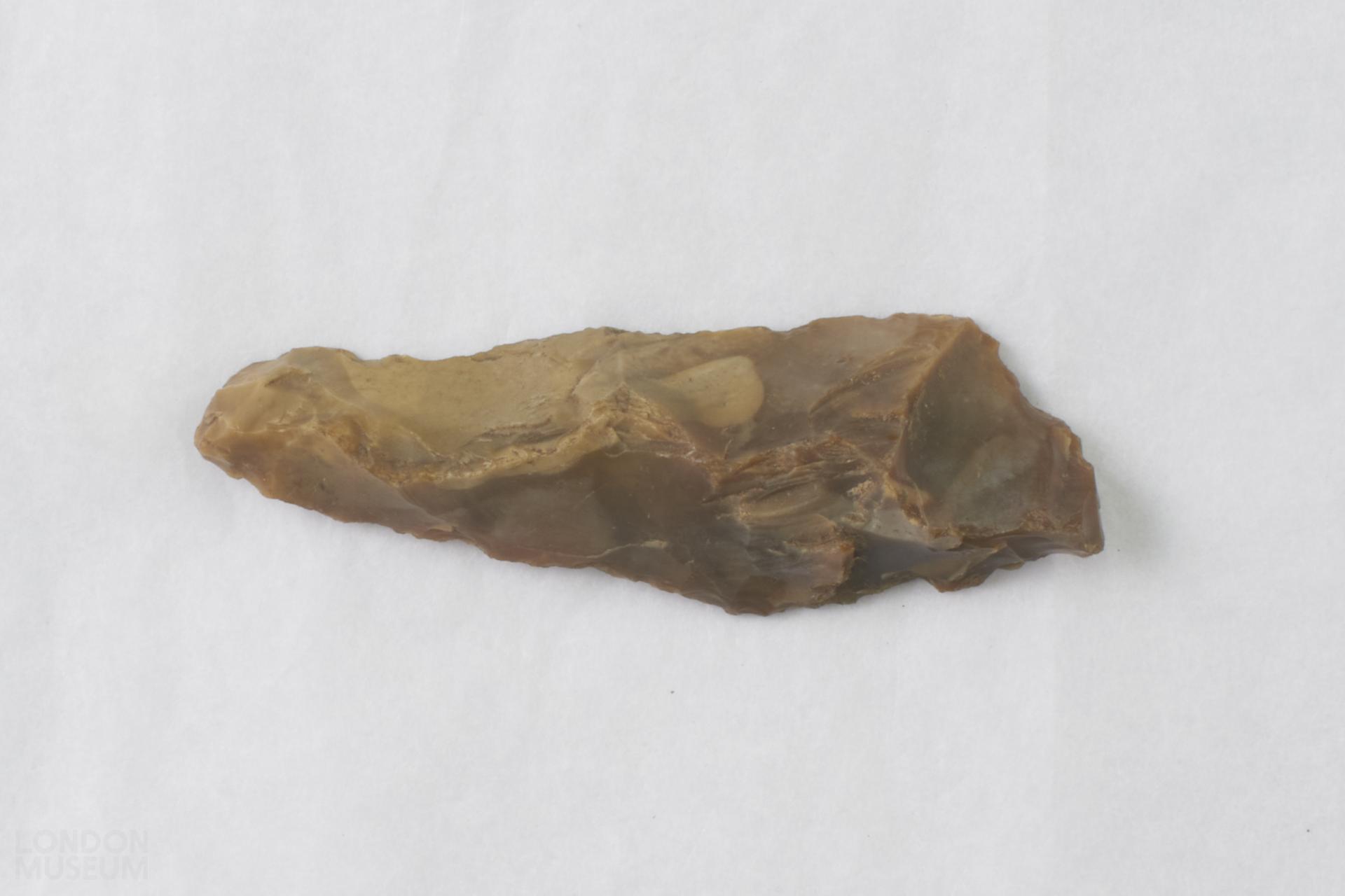 Brown flint flake of triangular cross-section, possibly a cresting flake.