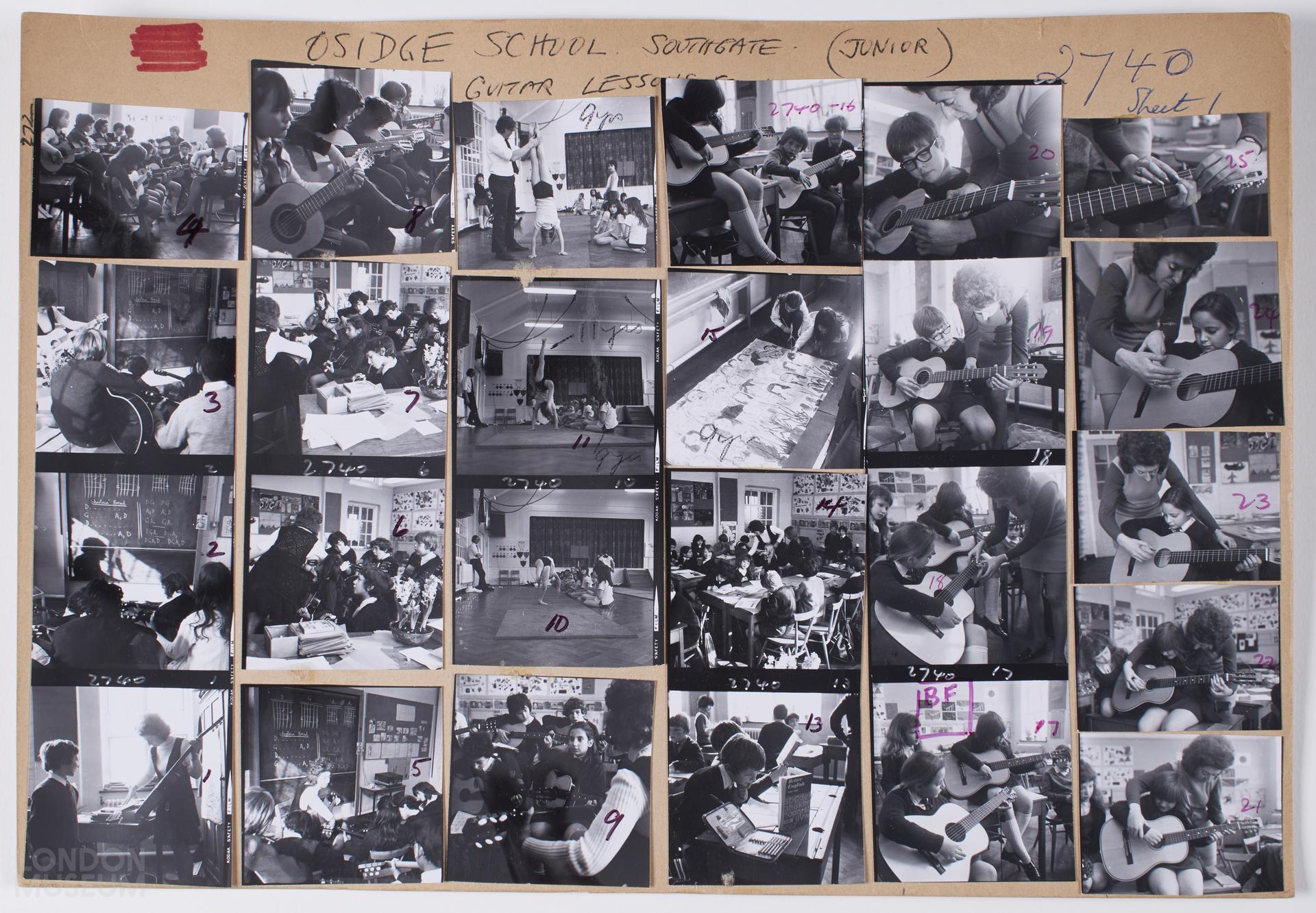Schools, 1972-1973: Osidge Primary School, Southgate, 02/1972. Muswell Hill Junior School, 1973. Activities in the schools. Contacts are numbered 1-11, 1 unnumbered possibly 12, 13-25.